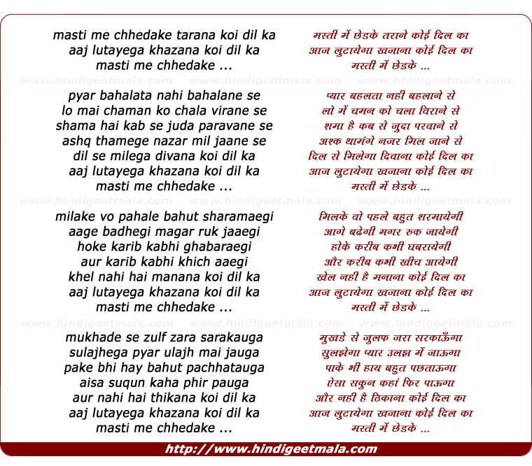 Lyrics of Masti Me Chhedke Tarana Koi Dil Ka - मस्ती में छेड़के तराना कोई दिल का