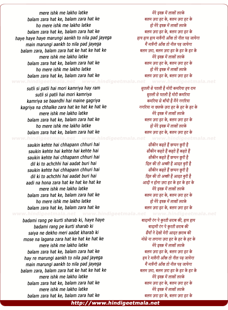 Lyrics of Mere Ishq Me Lakho Latke Balam Zara Hatke - मेरे इश्क़ में लाखों लटके बलम जरा हटके