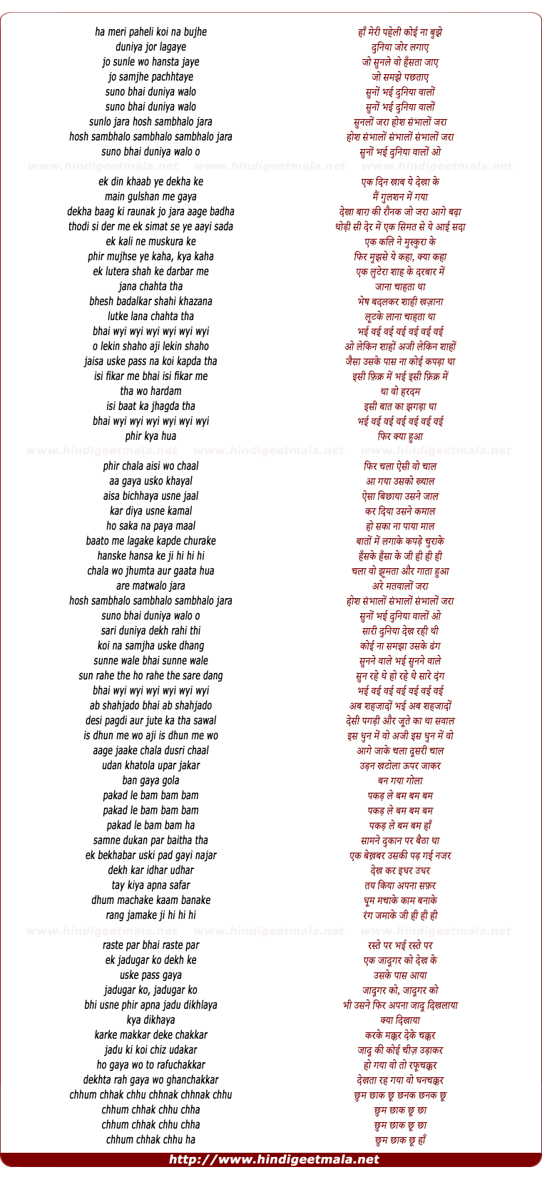 Lyrics of Meri Paheli Koi Na Bujhe - मेरी पहेली कोई ना बुझे ha meri paheli koi na bujhe