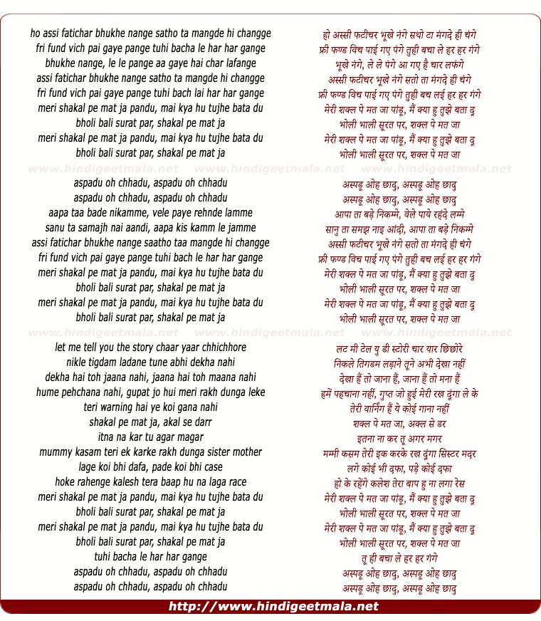 Lyrics of Meri Shakal Pe Mat Ja Pandu, Mai Kya Hu Tujhe Bata Du - मेरी शक्ल पे मत जा पांडू, मैं क्या हूँ तुझे बता दू