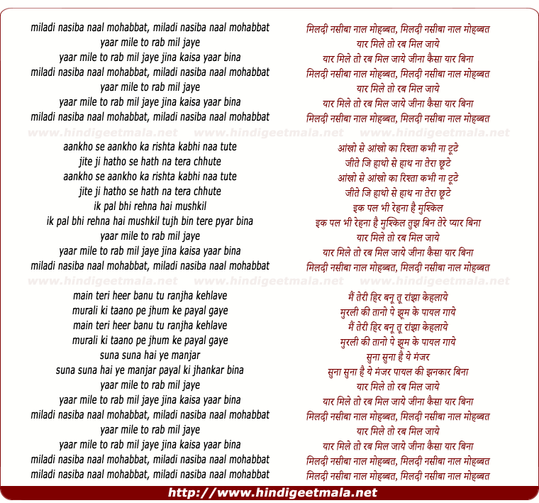 Comments for lyrics of song "Miladi Nasiba Naal Mohabbat"