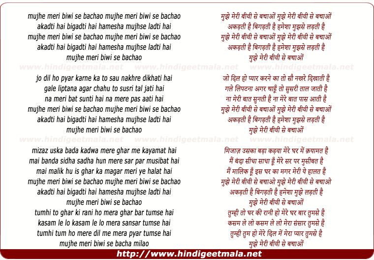 Lyrics of Mujhe Meri Bibi Se Bachao - मुझे मेरी बीवी से बचाओं