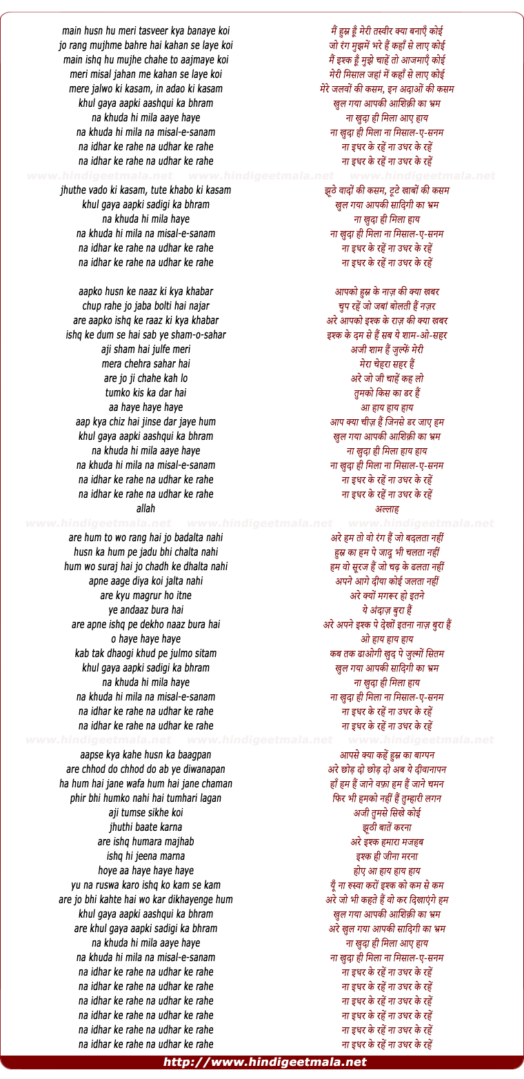 Lyrics of Na Idher Ke Rahe Na Udher Ke Rahe - ना इधर के रहें ना उधर के रहें