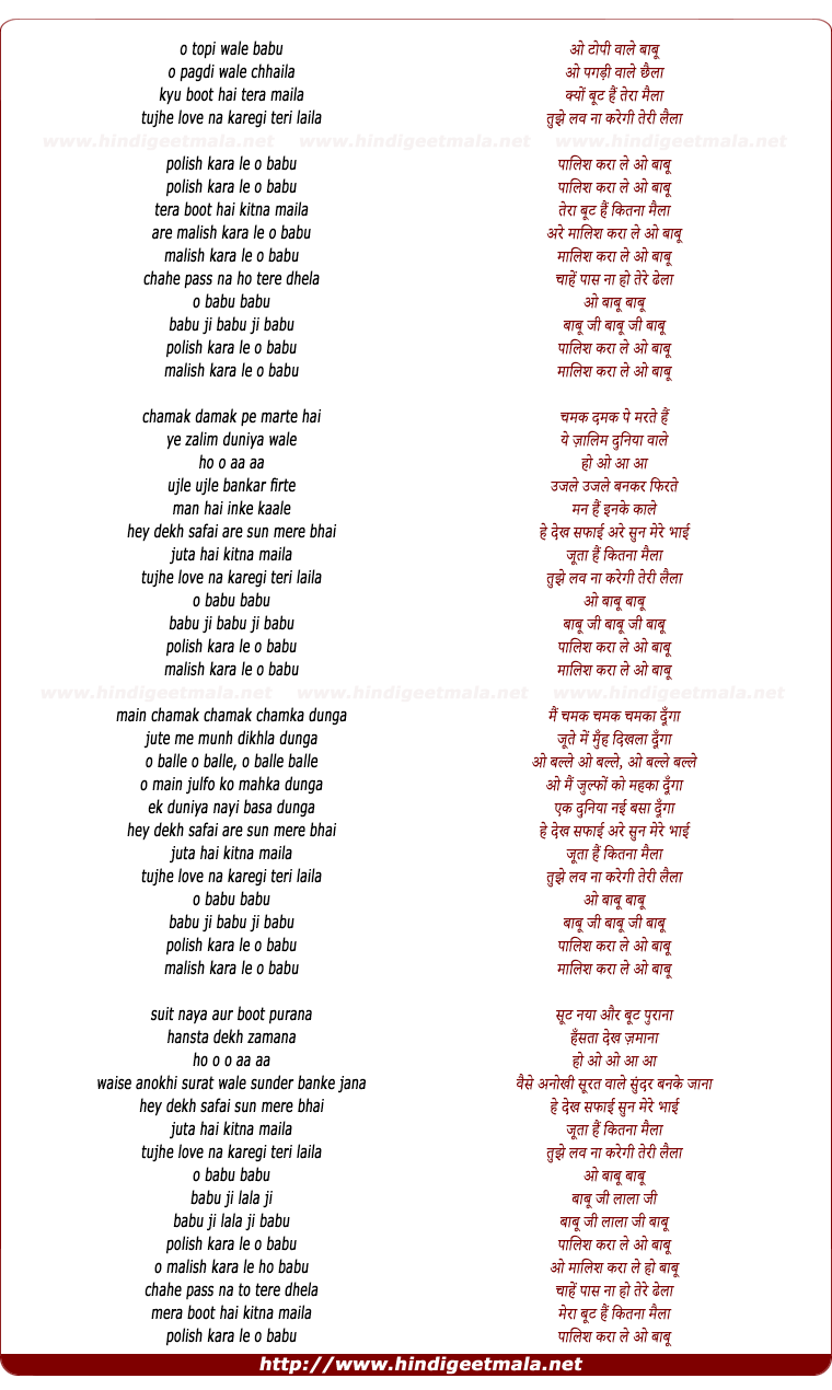 Lyrics of O Topi Wale Babu - ओ टोपी वाले बाबू