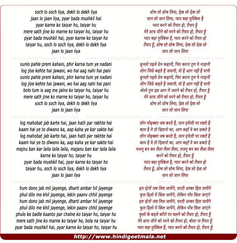 taiyar hu, soch lo soch liya, dekh lo dekh liya