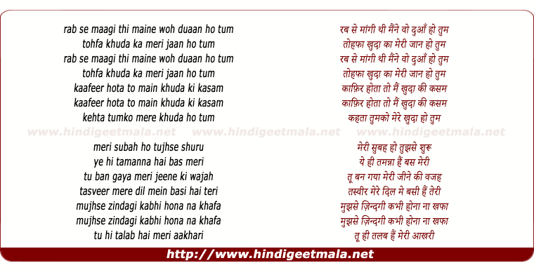 Lyrics of Rab Se Maangi - रब से मांगी थी मैंने वो दुआँ हो तुम