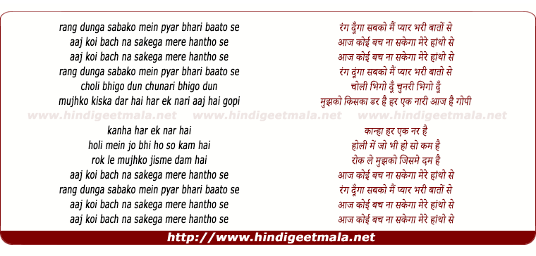 Lyrics of Rang Dunga Sabko Mai Pyar Bhari Bato Se - रंग दूँगा सबको मैं प्यार भरी बातों सेrang dunga sabako mein pyar bhari baato se