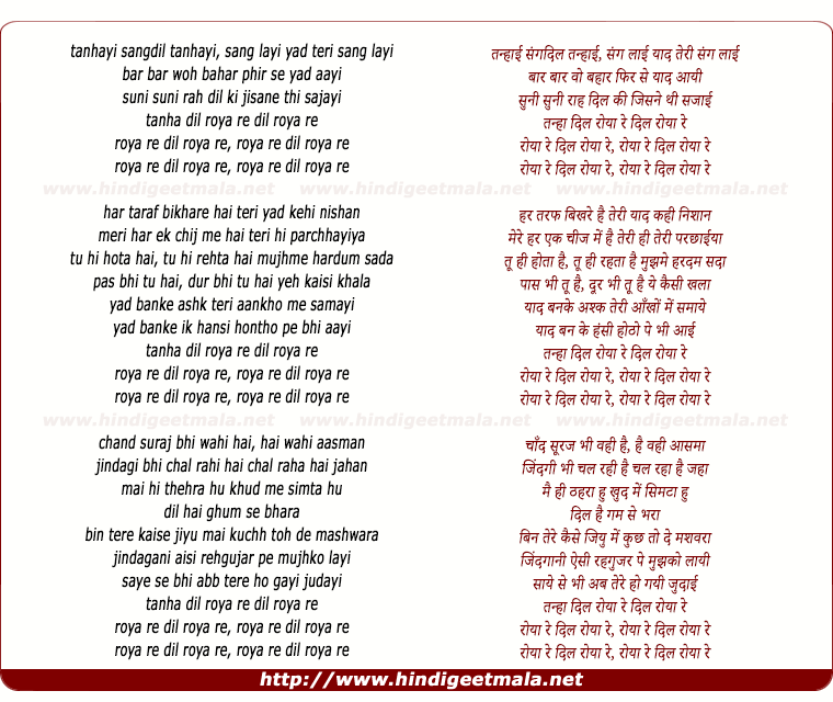 tanha dil roya re dil roya re