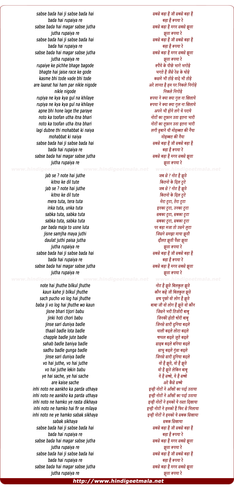 Comments for lyrics of song "Sabse Bada Hai Ji Sabse Bada Hai"
