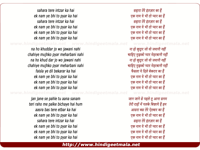 Lyrics of Sahara Tere Intezaar Ka Hai Ek Naam Yeh Bhi To - सहारा तेरे इंतज़ार का हैं एक नाम ये भी तो