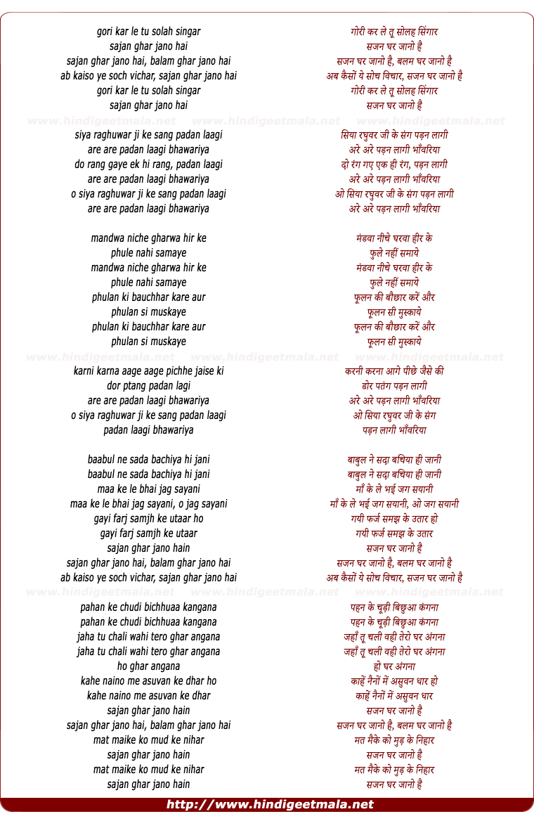 Lyrics of Sajan Ghar Jana Hai - सजन घर जाना है