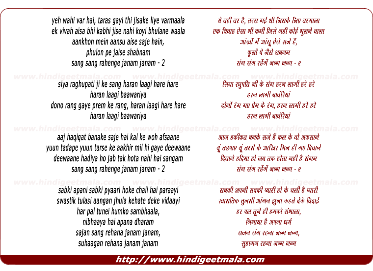 Comments for lyrics of song "Sajan Sang Rehanaa Janam Janam"