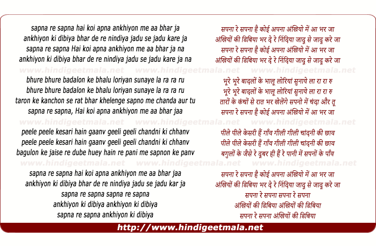 Lyrics of Sapna Re Sapna - सपना रे सपना