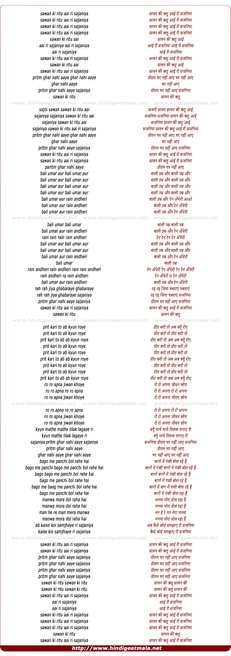 Lyrics of Sawan Ki Ritu Aayi Re - सावन की ऋतू आई री सजनिया
