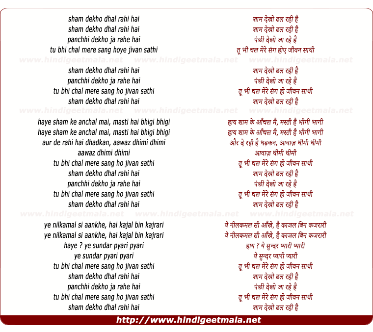 Lyrics of Shaam Dekho Dhal Rahi Hai - शाम देखो ढल रही है