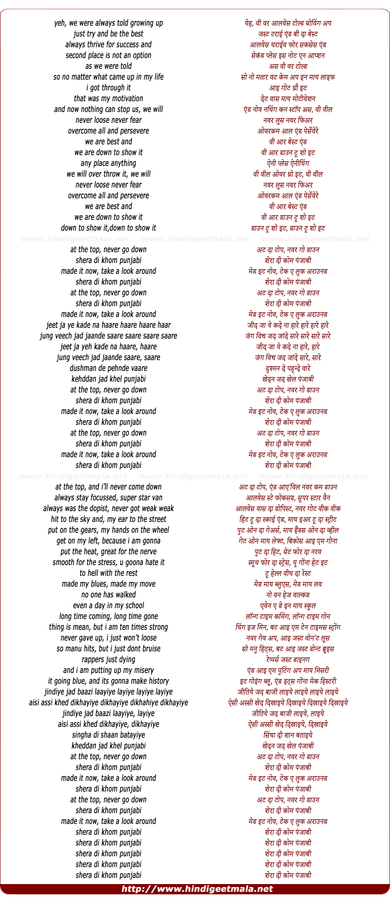 Lyrics of Shera Di Khom Punjabi - शेरा दी कोम पंजाबीyeh, we were always told growing up