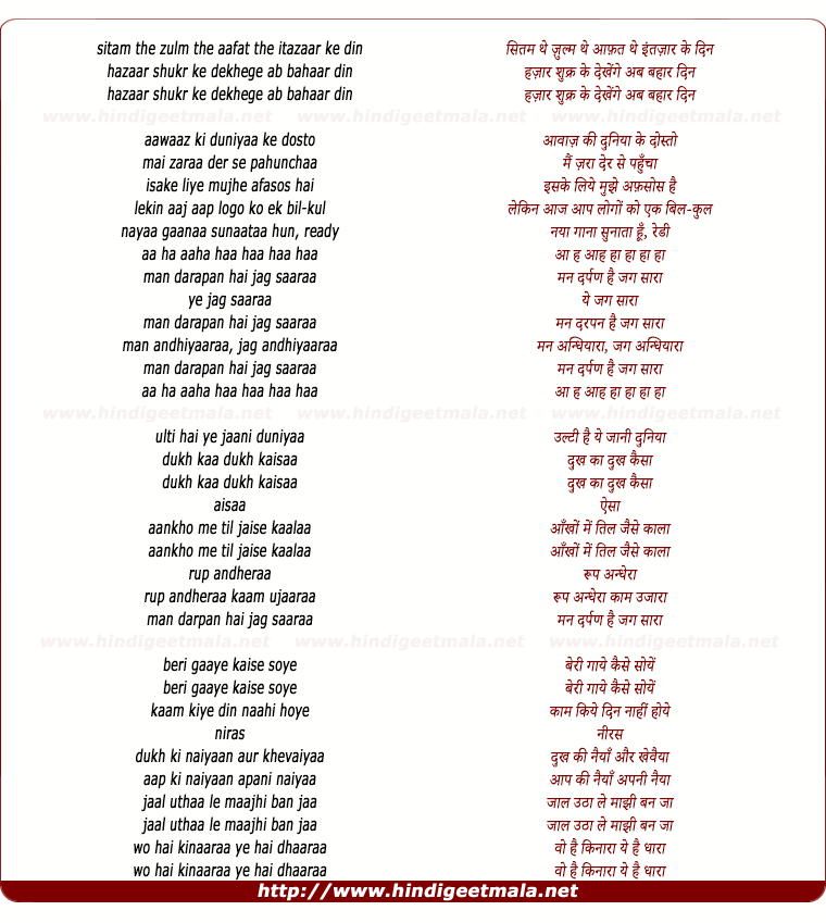 Lyrics of Man Darapan Hai Jag Saaraa - मन दर्पण है जग सारा
