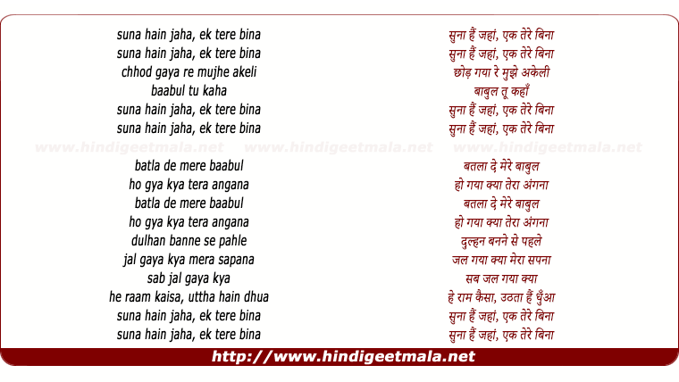 Lyrics of Suna Hai Jaha Ek Tere Bina - सुना हैं जहां एक तेरे बिना