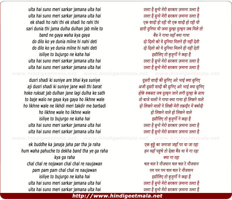 Comments for lyrics of song "Suno Meri Sarkar Zamana Ulta Hai"
