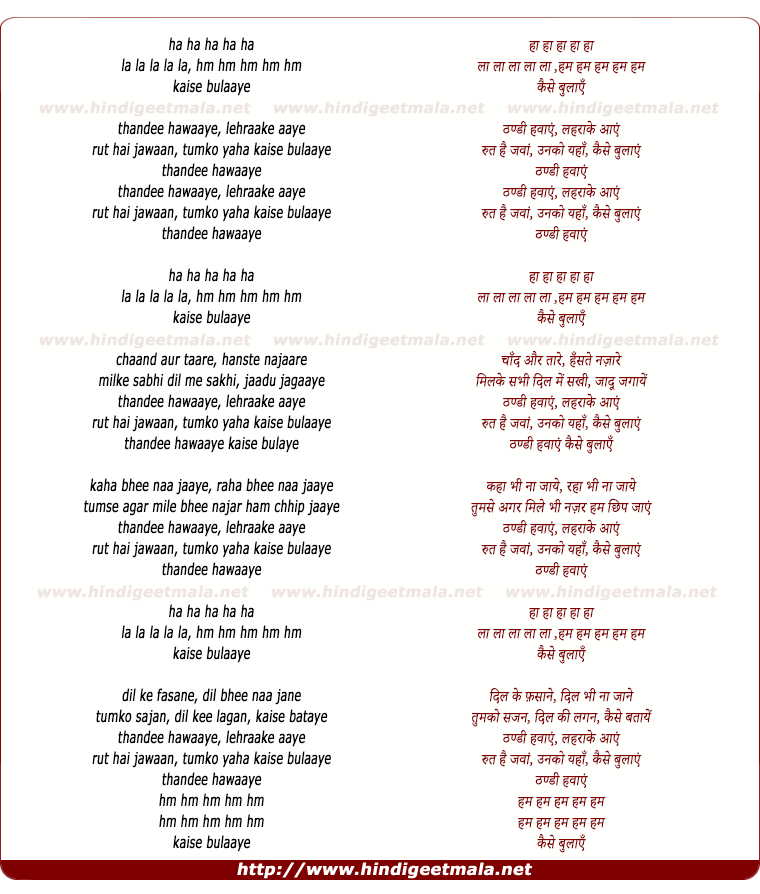 Comments for lyrics of song "Thandi Hawayen, Lehrake Aaye"