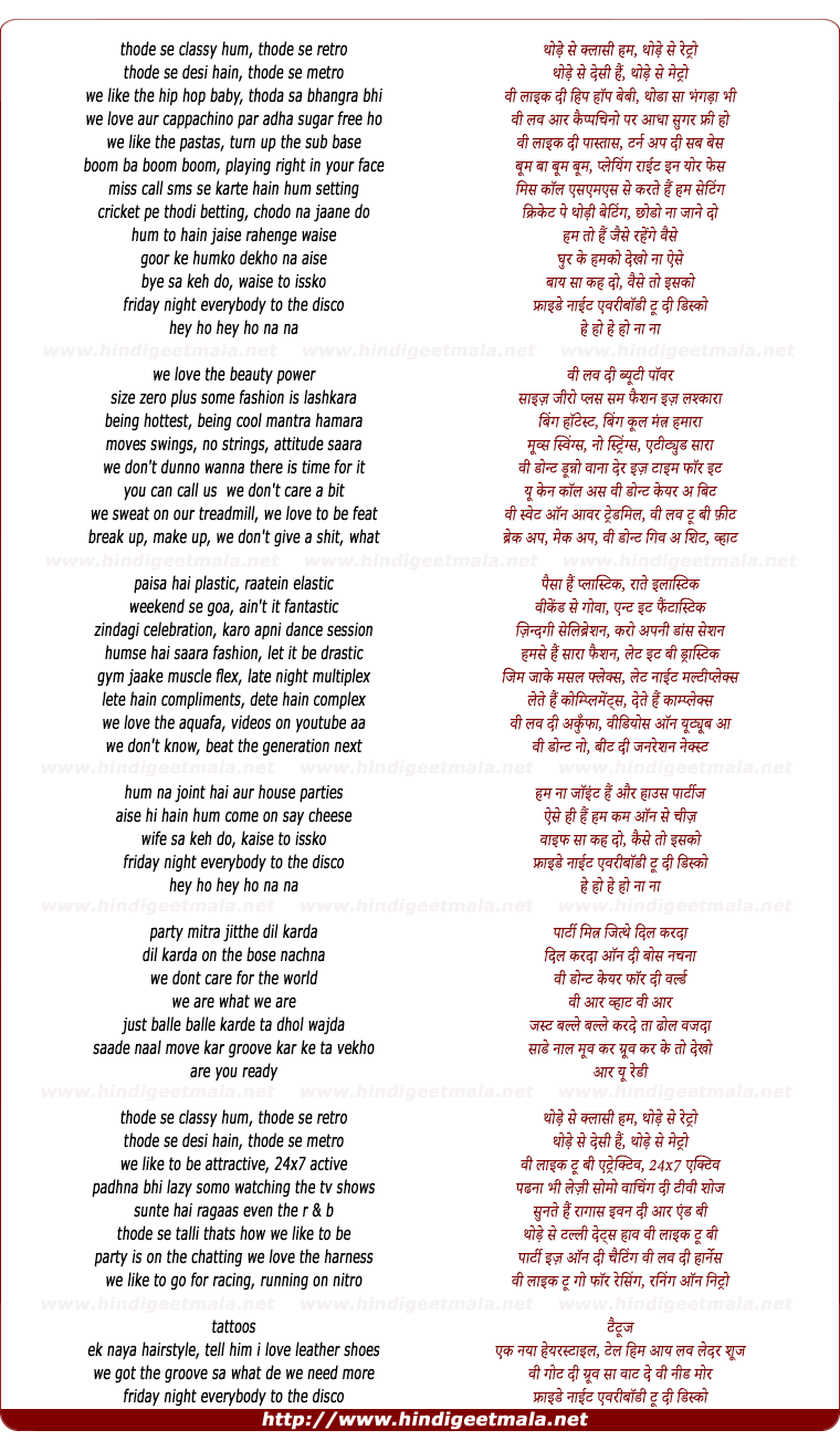 Comments for lyrics of song "Thode Se Classy Hum Thode Se Retro"