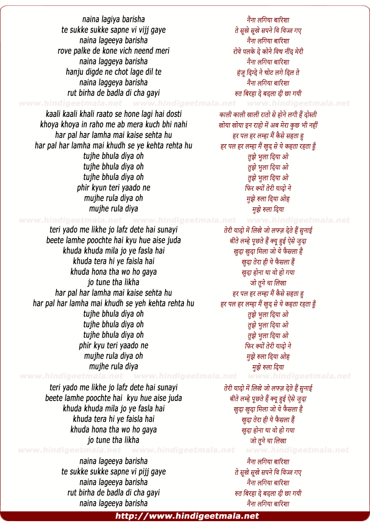 Lyrics of Tujhe Bhula Diya (Remix) - नैना लगिया बारिशाnaina lagiya barisha