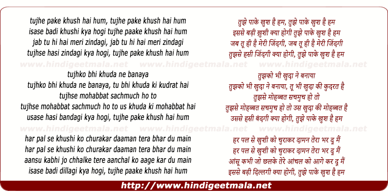 Lyrics of Tujhe Paake Khush Hai Hum - तुझे पाके खुश है हम