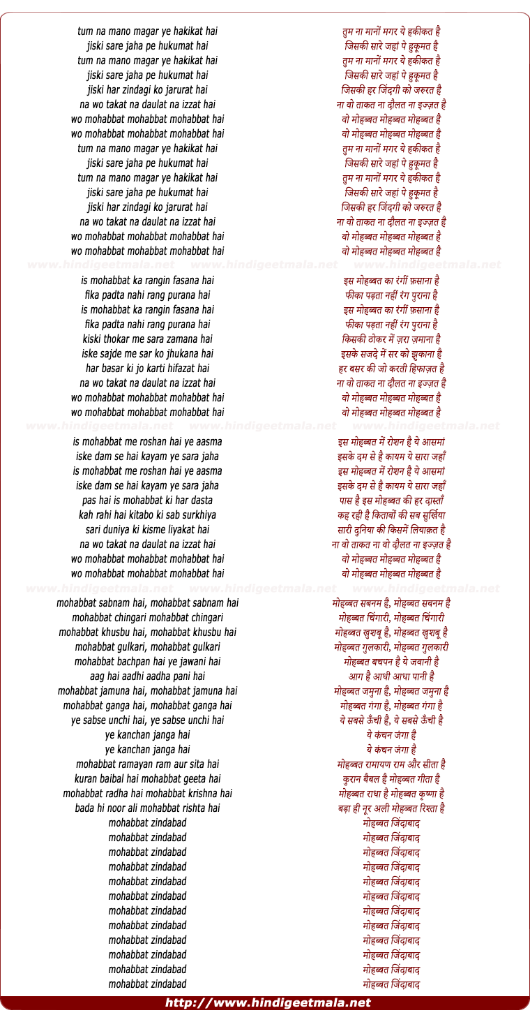 Lyrics of Tum Na Mano Magar Ye Hakikat Hai - तुम ना मानों मगर ये हकीकत है