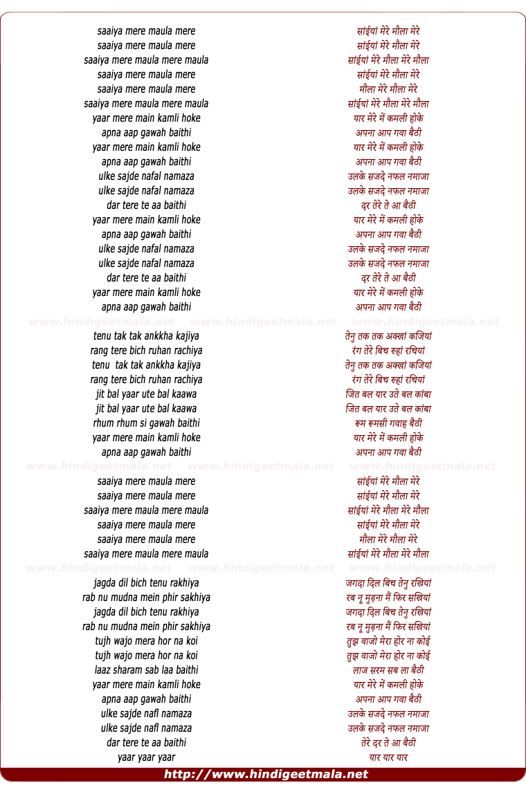 Lyrics of Yaar Mere - सांईयां मेरे मौला मेरे
