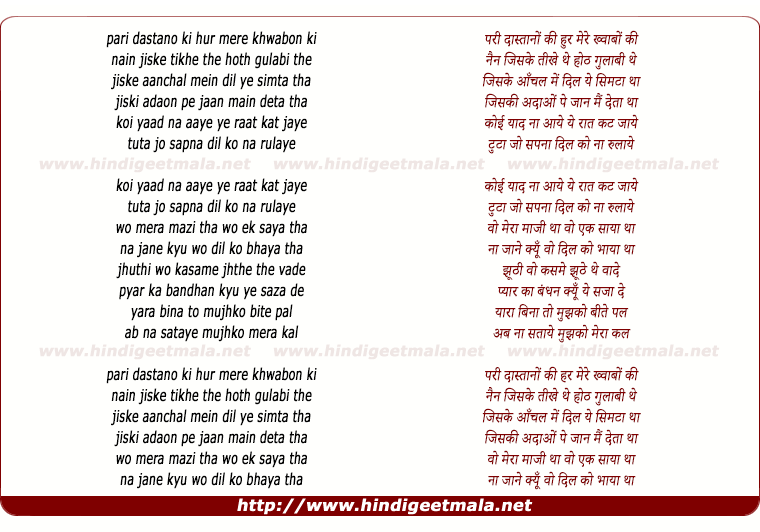 pari dastano ki hur mere khwabon ki