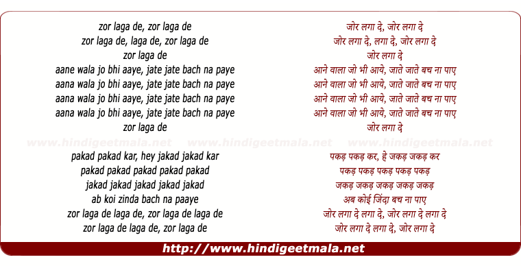 zor laga de, zor laga de